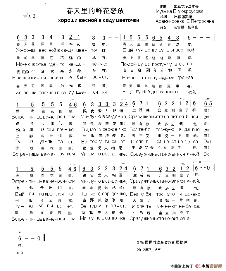 提示:在曲谱图片上单击右键,选择“图片另存为...”即可将曲谱保存到您的电脑中,打印时候可将图片插入到WORD中,调整合适大小打印即可。