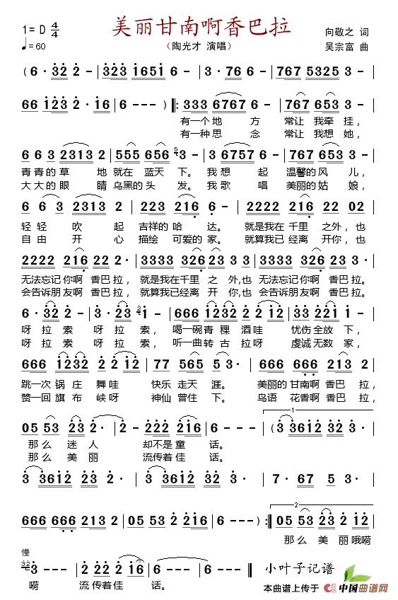 关于《美丽的甘南啊香巴拉》曲谱的评论