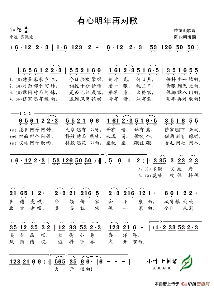 演唱(奏):传统山歌调 格式:简谱 来源:小叶子记谱 上传:~金沙浪~
