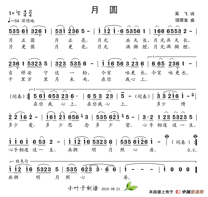 关于《月圆》曲谱的评论