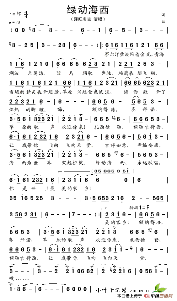 关于《绿动海西》曲谱的评论