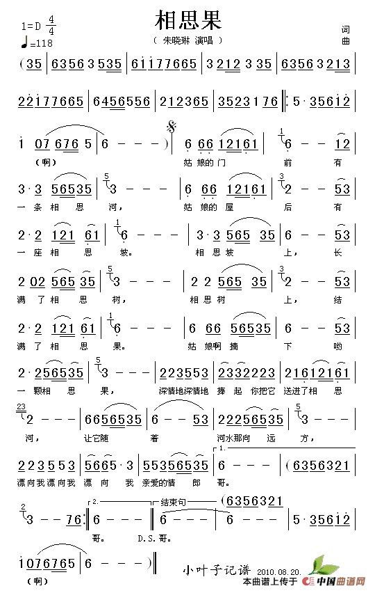 演唱(奏):朱小琳 格式:简谱 来源:小叶子记谱 上传:~金沙浪~