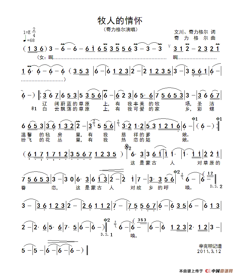 关于《牧人的情怀》曲谱的评论
