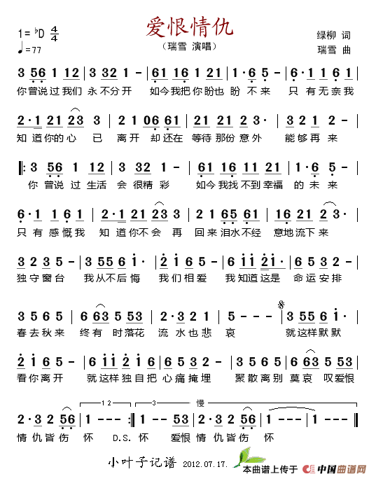 关于《爱恨情仇》曲谱的评论