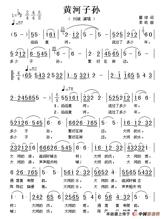 关于《黄河子孙》曲谱的评论