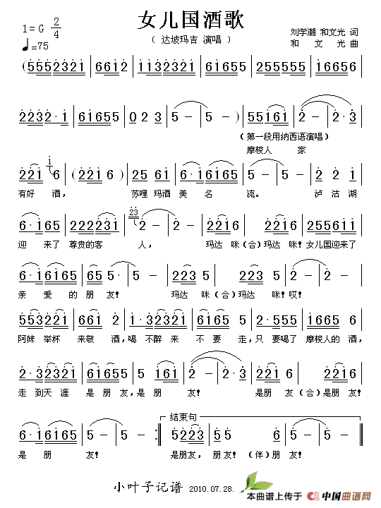 关于《女儿国酒歌》曲谱的评论