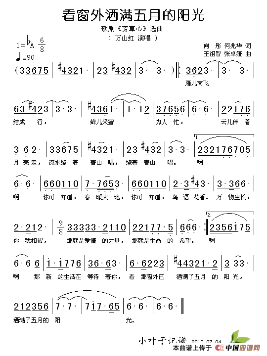 关于《看窗外洒满五月的阳光》曲谱的评论