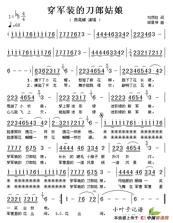 关于《穿军装的刀郎姑娘》曲谱的评论
