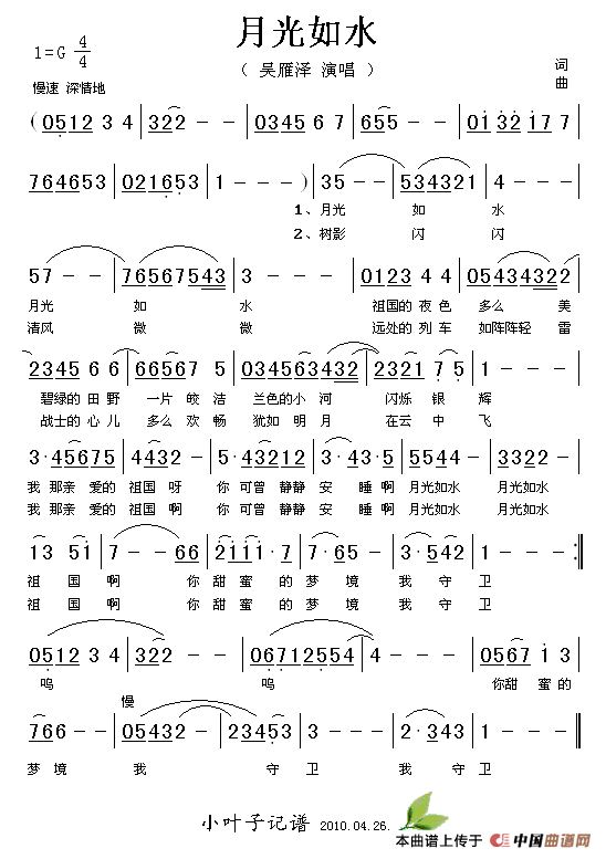 关于《月光如水》曲谱的评论