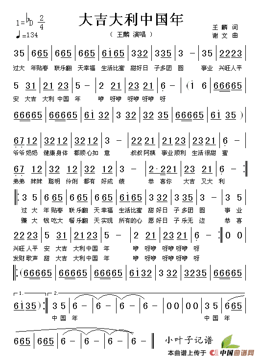 关于《大吉大利中国年》曲谱的评论