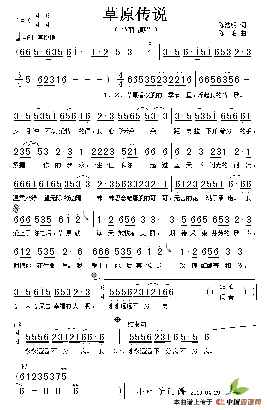 当前位置: 首页 谱友园地 谱友记谱 草原传说(陈洁明词 陈珀曲)