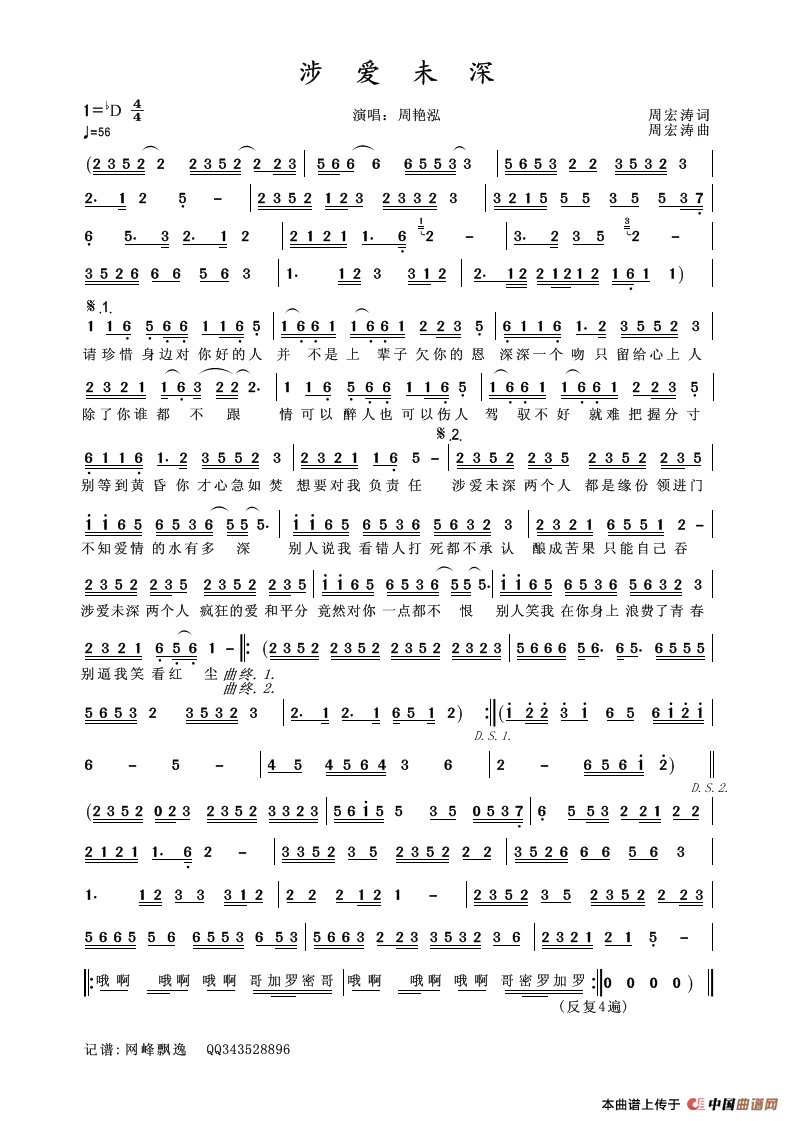 关于《涉爱未深》曲谱的评论