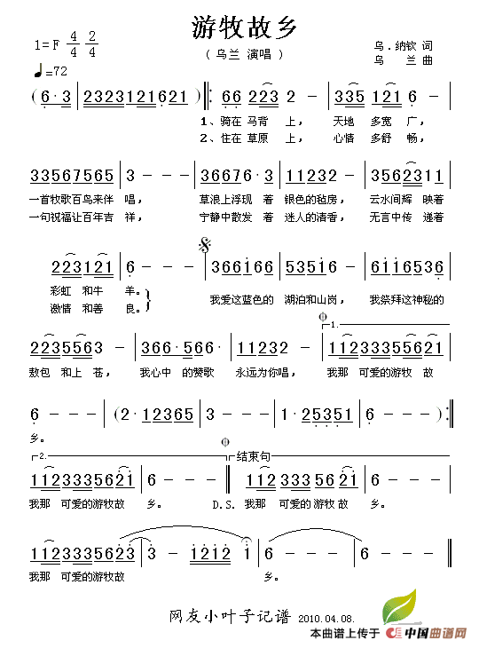 关于《游牧故乡》曲谱的评论