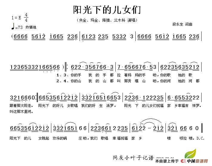 关于《阳光下的儿女们》曲谱的评论