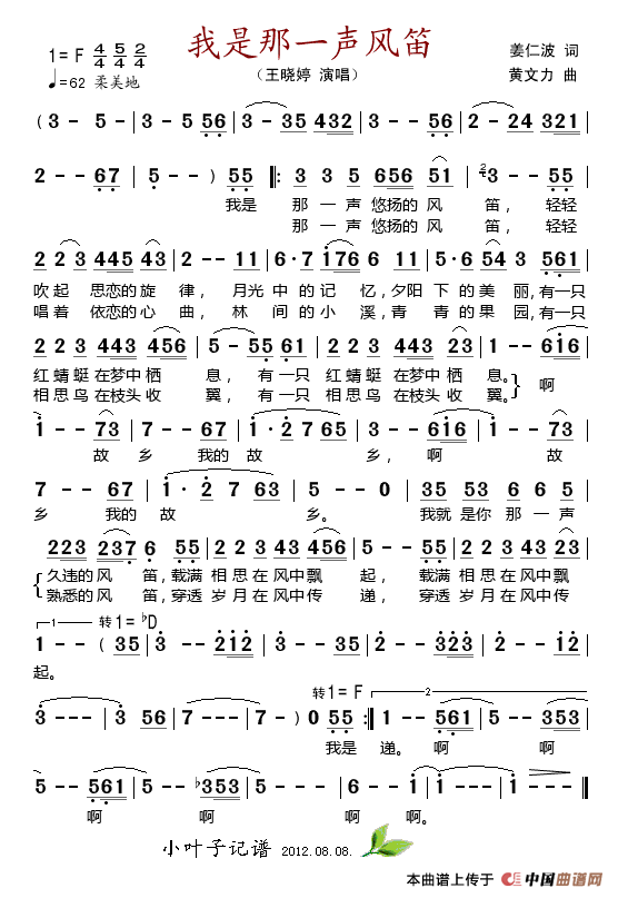 关于《我是你那一声风笛》曲谱的评论