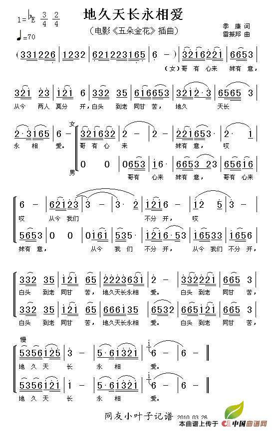 关于《地久天长永相爱》曲谱的评论