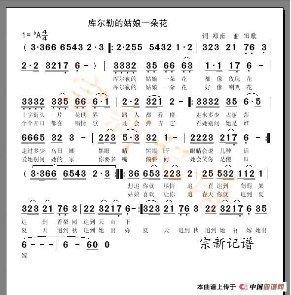 关于《库尔勒的姑娘一朵花》曲谱的评论