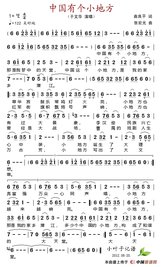 关于《中国有个小地方》曲谱的评论