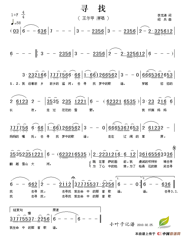 关于《寻找》曲谱的评论