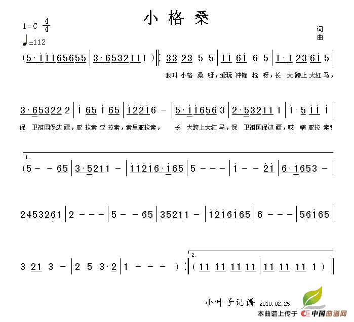 关于《小格桑》曲谱的评论