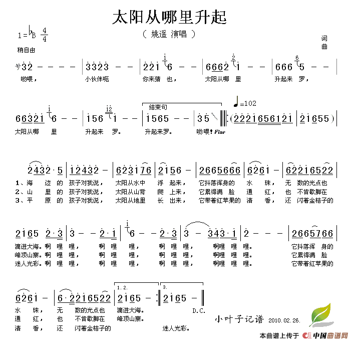 关于《太阳从哪里升起来》曲谱的评论