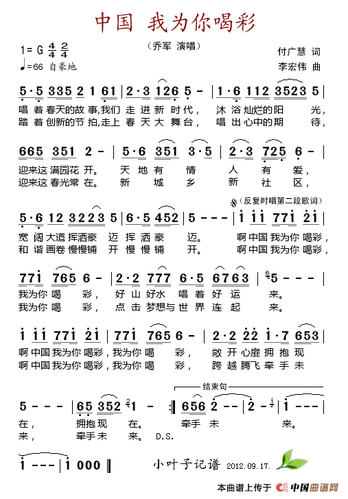 提示:在曲谱图片上单击右键,选择“图片另存为...”即可将曲谱保存到您的电脑中,打印时候可将图片插入到WORD中,调整合适大小打印即可。