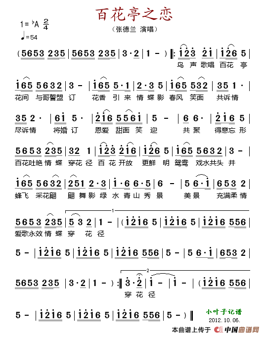 关于《百花亭之恋》曲谱的评论