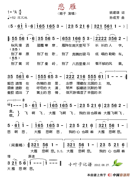 提示:在曲谱图片上单击右键,选择“图片另存为...”即可将曲谱保存到您的电脑中,打印时候可将图片插入到WORD中,调整合适大小打印即可。