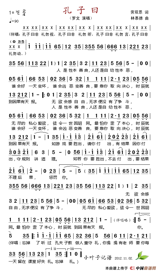 提示:在曲谱图片上单击右键,选择“图片另存为...”即可将曲谱保存到您的电脑中,打印时候可将图片插入到WORD中,调整合适大小打印即可。