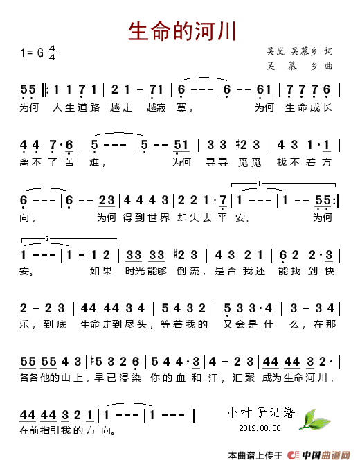 作词:吴慕乡 作曲:吴慕乡 格式:简谱 来源:小叶子记谱 上传:~金沙浪~