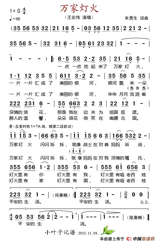 关于《万家灯火》曲谱的评论