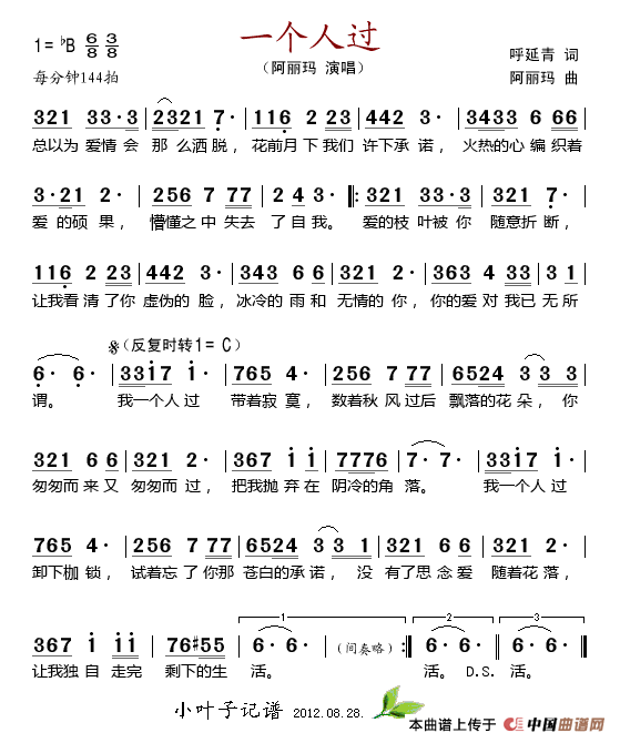 关于《一个人过》曲谱的评论