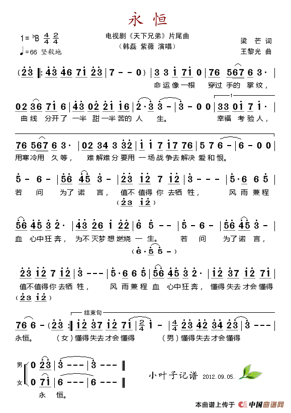 当前位置: 首页 谱友园地 谱友记谱 永恒(电视剧《天下兄弟》片尾曲)