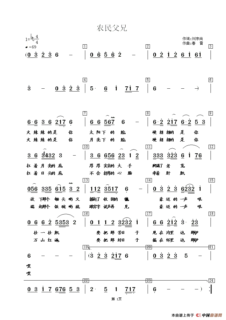 关于《农民父兄》曲谱的评论