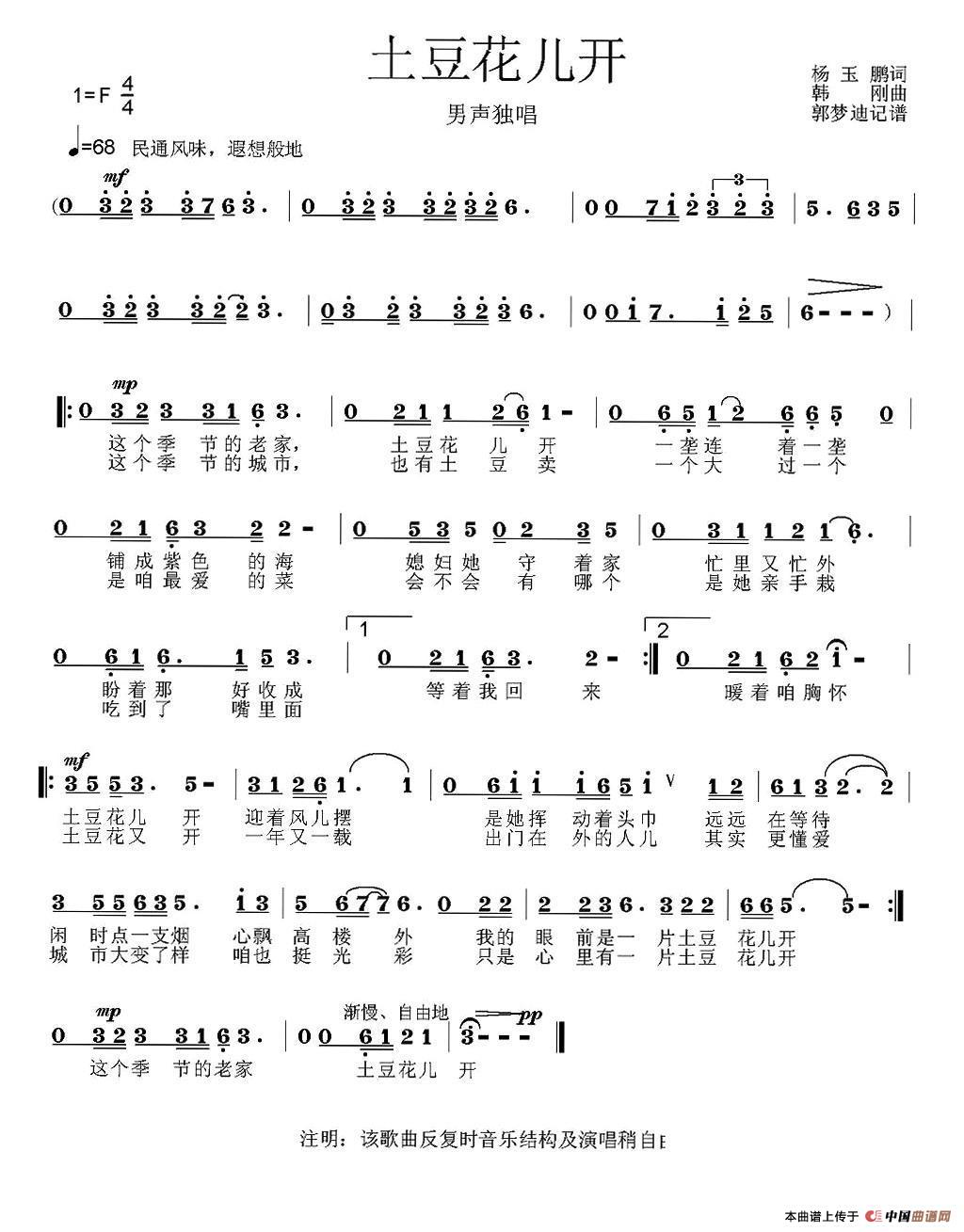 关于《土豆花儿开》曲谱的评论