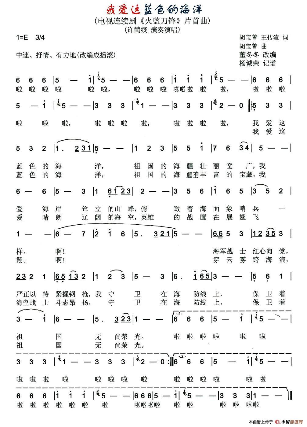 关于《我爱这蓝色的海洋》曲谱的评论