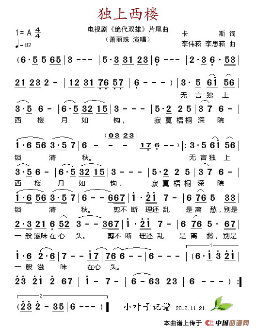 关于《独上西楼》曲谱的评论