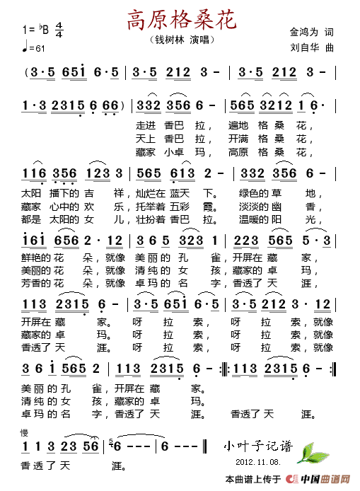 关于《高原格桑花》曲谱的评论