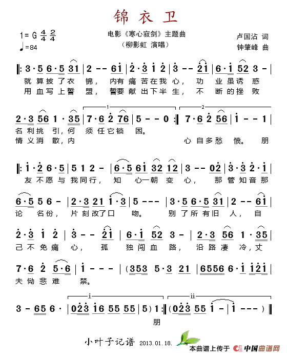 关于《锦衣卫》曲谱的评论