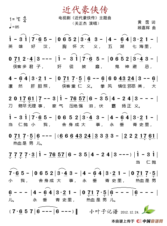 提示:在曲谱图片上单击右键,选择“图片另存为...”即可将曲谱保存到您的电脑中,打印时候可将图片插入到WORD中,调整合适大小打印即可。
