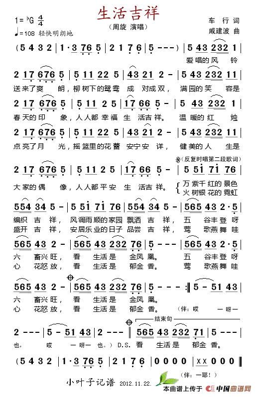 关于《生活吉祥》曲谱的评论