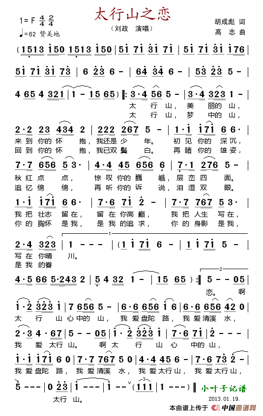 关于《太行山之恋》曲谱的评论