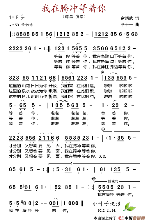 提示:在曲谱图片上单击右键,选择“图片另存为...”即可将曲谱保存到您的电脑中,打印时候可将图片插入到WORD中,调整合适大小打印即可。