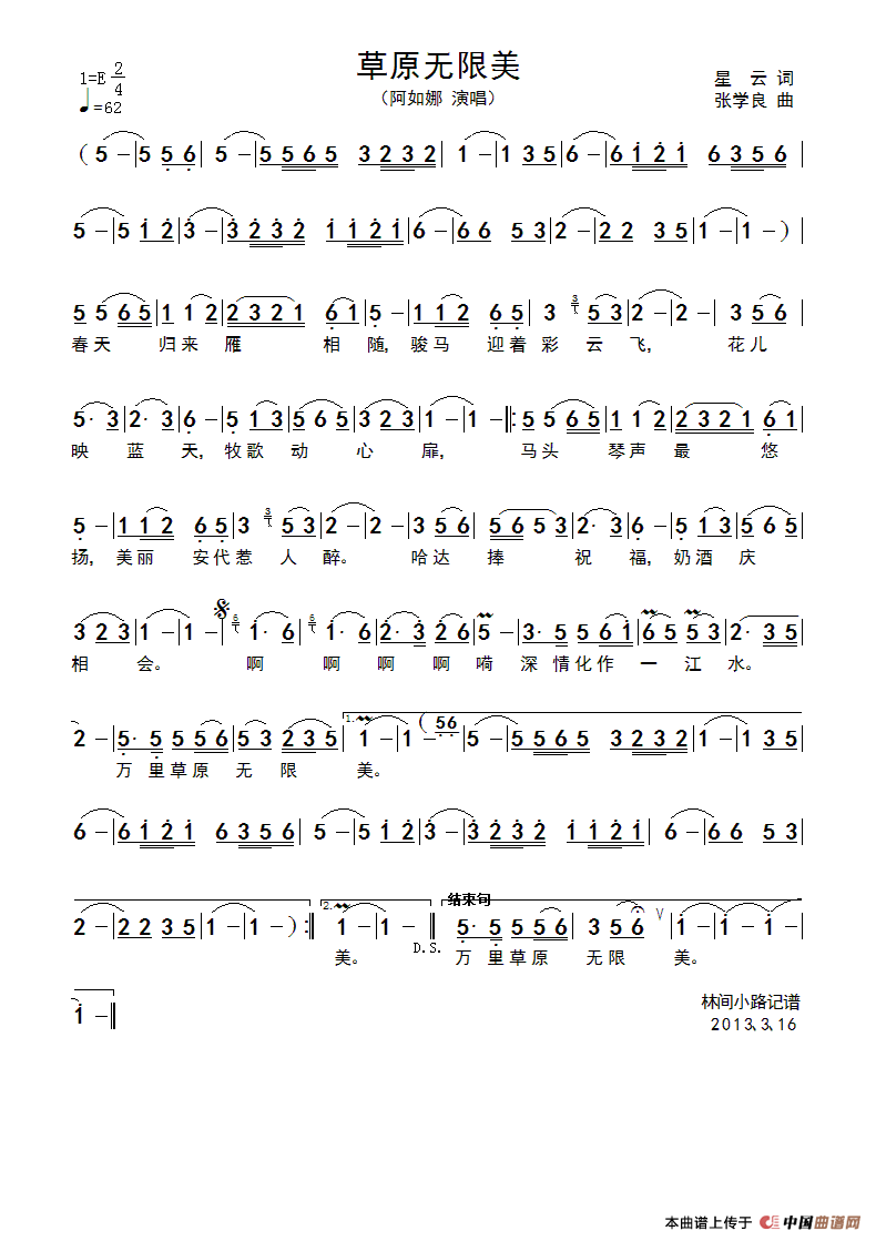 关于《草原无限美》曲谱的评论