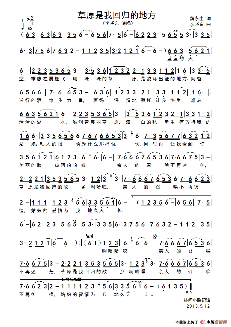 提示:在曲谱图片上单击右键,选择“图片另存为...”即可将曲谱保存到您的电脑中,打印时候可将图片插入到WORD中,调整合适大小打印即可。