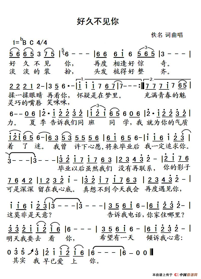 关于《好久不见你》曲谱的评论