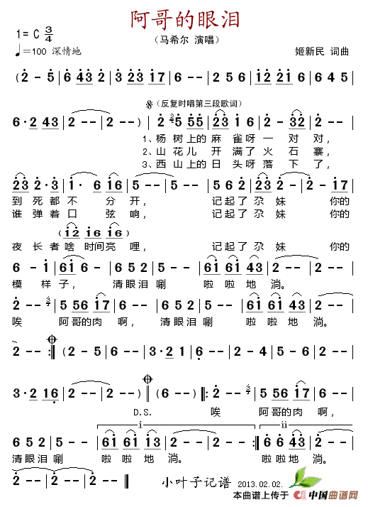 演唱(奏):马希尔 来源:小叶子记谱 上传:~金沙浪~