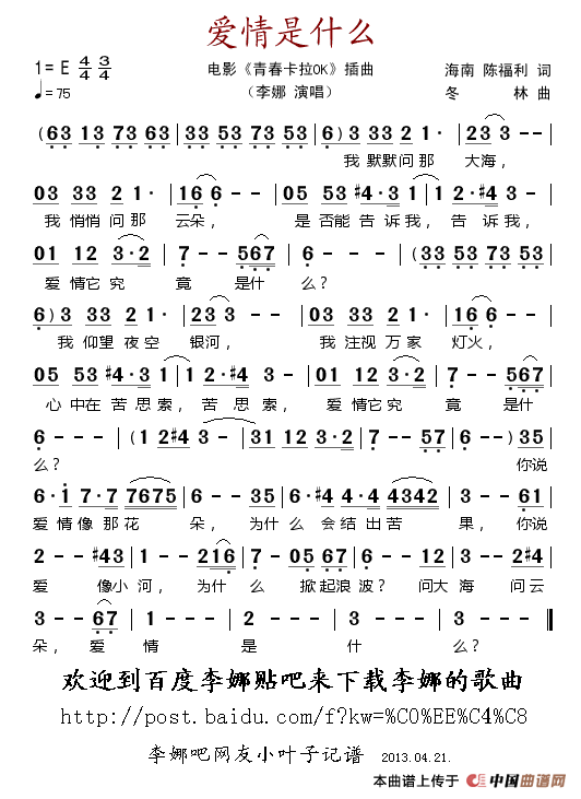 关于《爱情是什么(电影《青春卡拉OK》插曲)》曲谱的评论