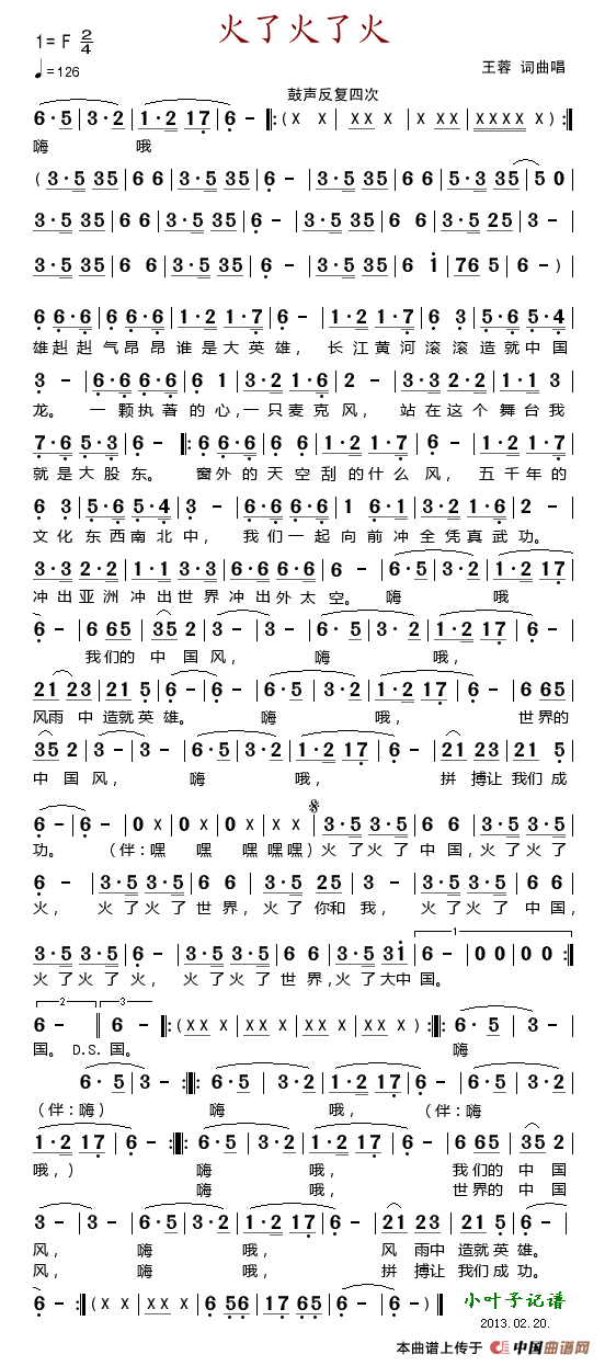 关于《火了火了火》曲谱的评论