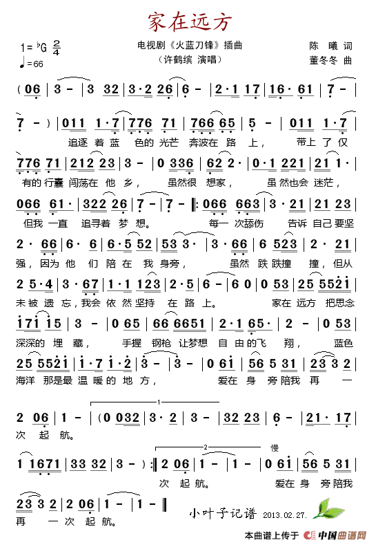 关于《家在远方(电视剧《火蓝刀锋》插曲)》曲谱的评论